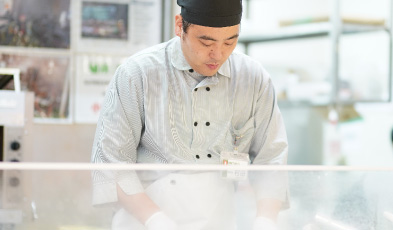 鮮魚部門の魅力は、「旬」と呼ばれる時期があり、自分たちで七尾港や宇出津港など近くの地元漁港からその時期に一番おいしい魚を仕入れ、その時自分にできる最高の「楽しい売り場」を作って「おもてなしをする」ことです。そして「対面」と呼ばれるどの店舗にも設けられているお客様と顔を合わせて話をしながら調理を行うスペースで、お客様と今日のおススメやお買い得、迷っているお客様にはその料理法や食べ方、調理サービスなど、魚を通して行うお客様との言葉のキャッチボールが一番の魅力だと思います。